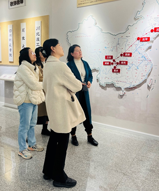座谈结束后,陈倩、黄丹梅馆长一行,实地参观了校史馆,通过珍贵的史料实物、生动的图文展示、沉浸式的场景还原,深入了解了学校的办学历史、发展成就、学科特色及文化底蕴,并对我校校史档案的征集整理、校史馆的建设运营工作给予了高度评价。